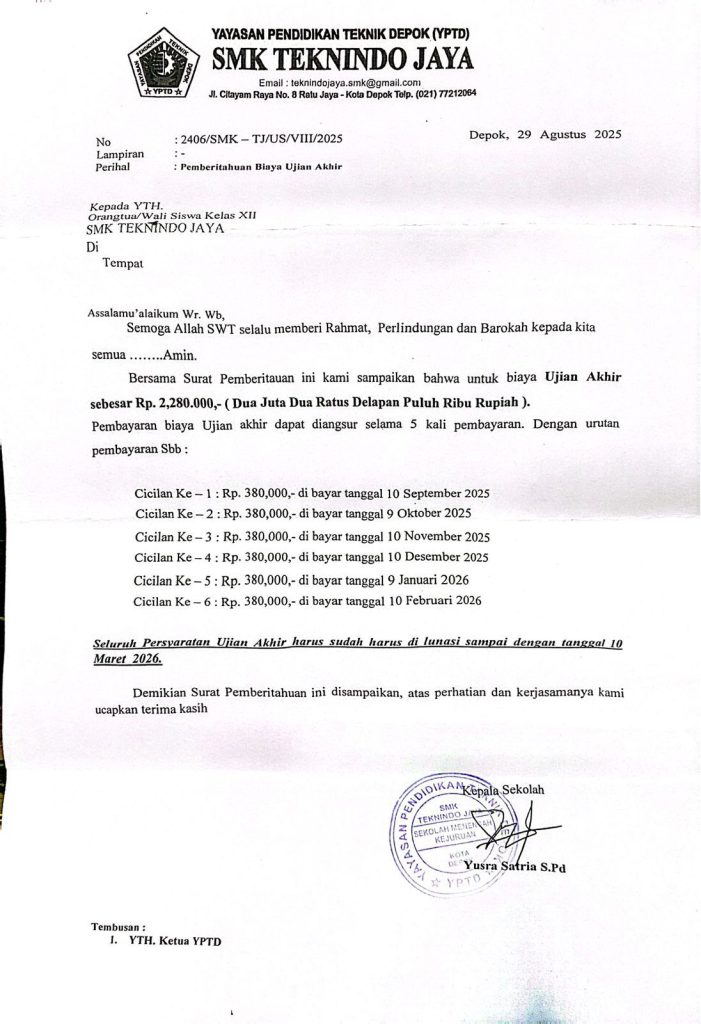 Biaya Ujian Akhir